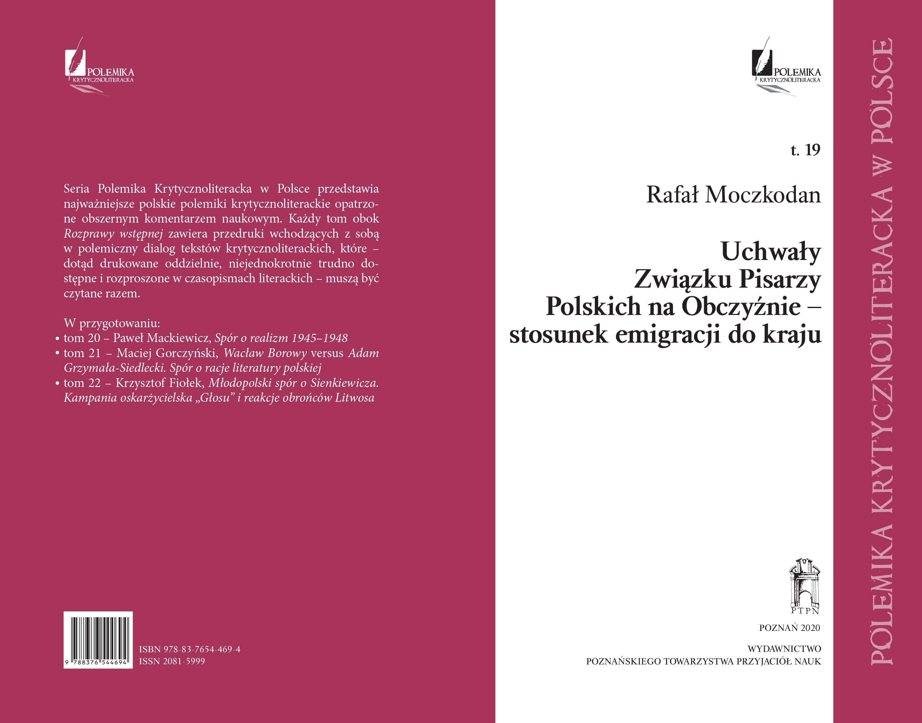 Rafał Moczkodan, Uchwały Związku Pisarzy Polskich na Obczyźnie – stosunek emigracji do kraju, Wydawnictwo Poznańskiego Towarzystwa Przyjaciół Nauk, Poznań 2020, ISBN 978-83-7654-469-4 (Polemika Krytycznoliteracka w Polsce, pod redakcją Sylwii Panek, tom 19), ss. 370.