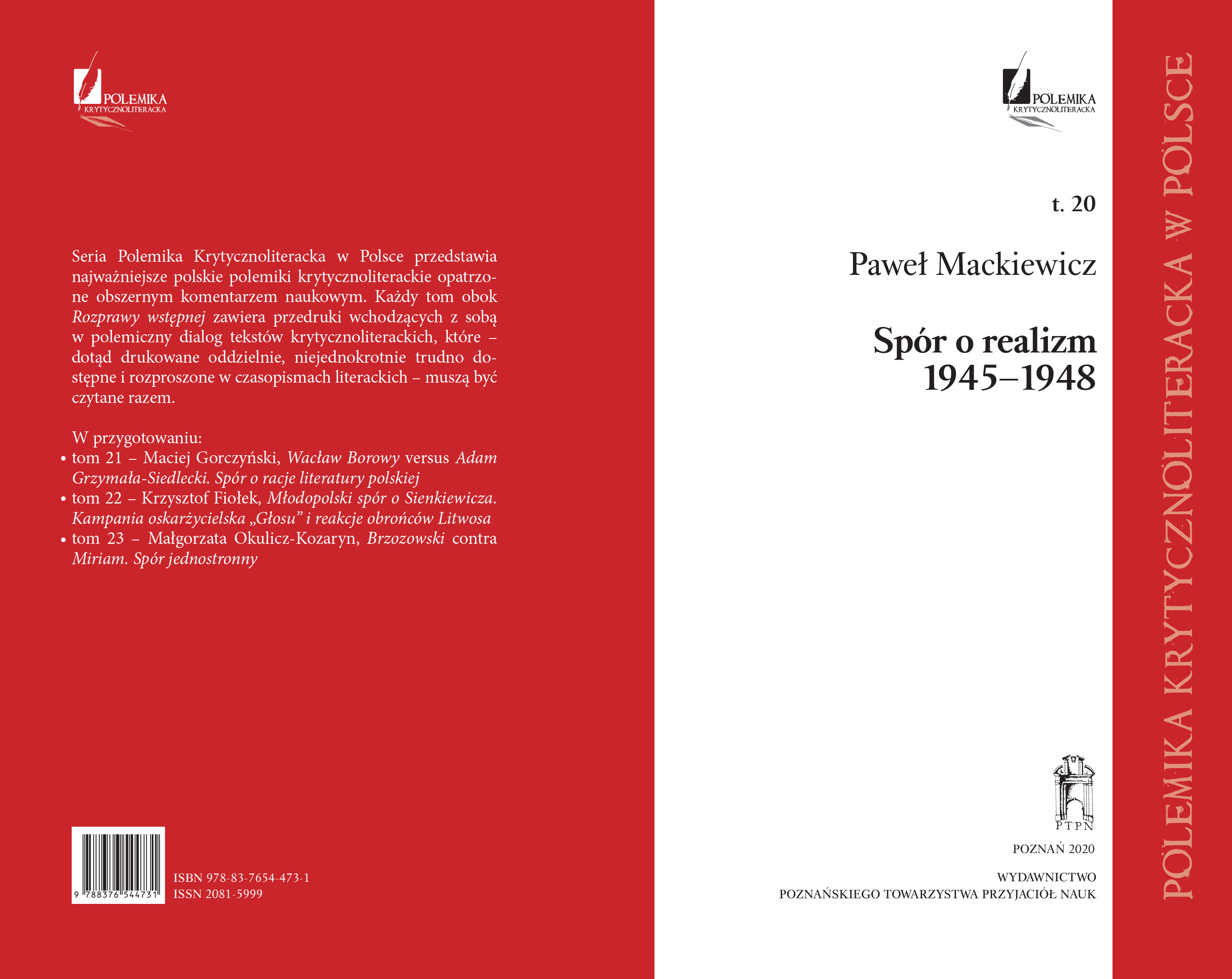 | dc.identifier.citation | Paweł Mackiewicz, Spór o realizm 1945–1948, Wydawnictwo Poznańskiego Towarzystwa Przyjaciół Nauk, Poznań 2020, ISBN 978-83-7654-473-1 (Polemika Krytycznoliteracka w Polsce, pod redakcją Sylwii Panek, tom 20), ss. 324. | pl |