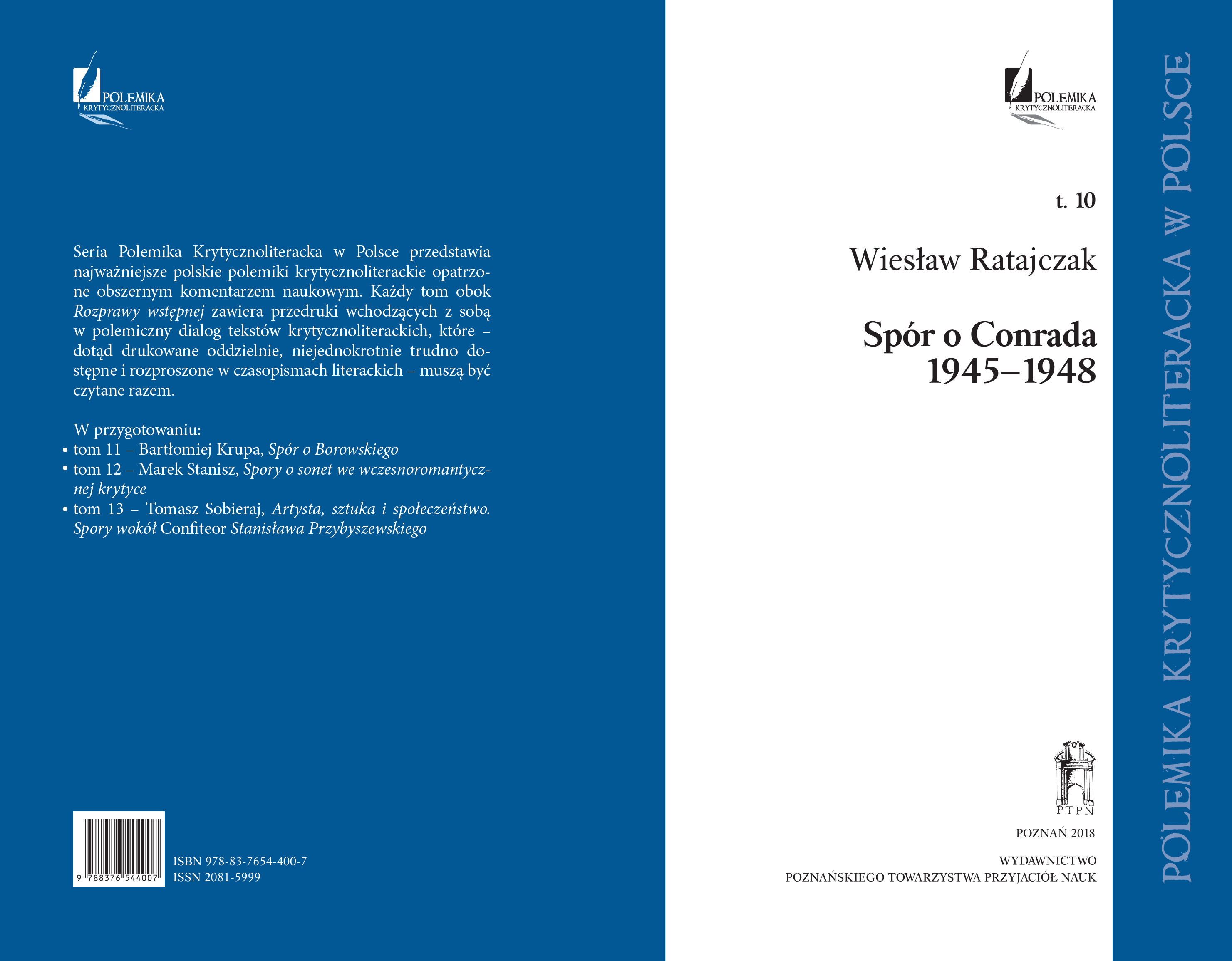 Wiesław Ratajczak, Spór o Conrada 1945–1948, Wydawnictwo Poznańskiego Towarzystwa Przyjaciół Nauk, Poznań 2018, ISBN 978-83-7654-400-7 (Polemika Krytycznoliteracka w Polsce, pod redakcją Sylwii Panek, tom 10), ss. 320.
