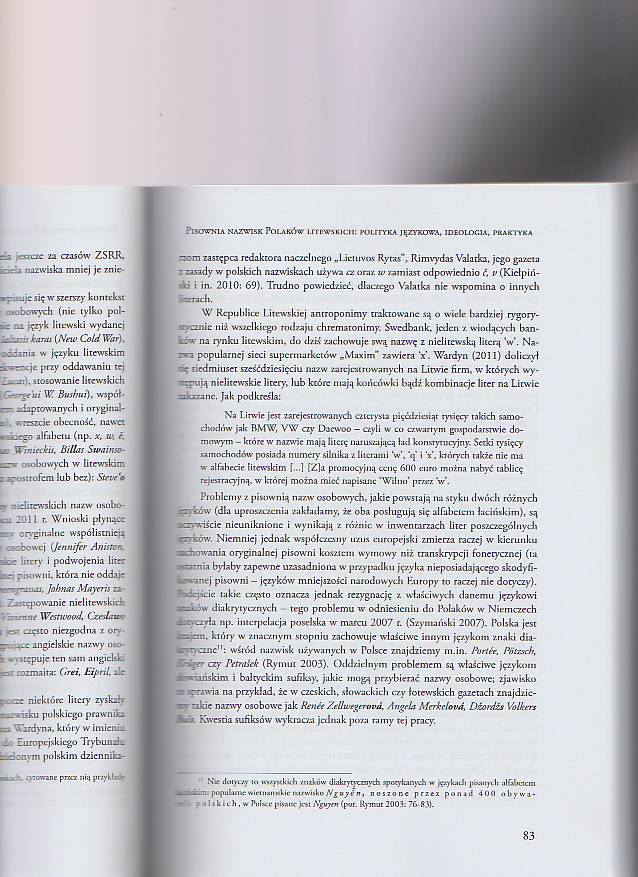 The spelling of the surnames of Polish Lithuanians: language policy, ideology, practice,