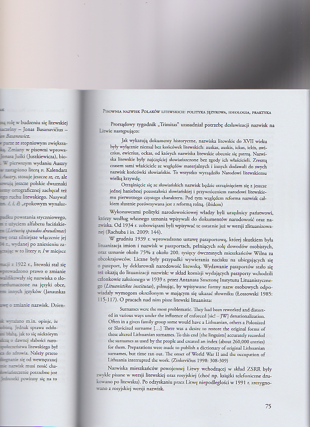 Pisownia nazwisk Polaków litewskich: polityka językowa, ideologia, praktyka