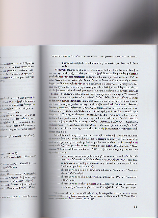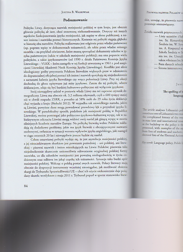 Pisownia nazwisk Polaków litewskich: polityka językowa, ideologia, praktyka